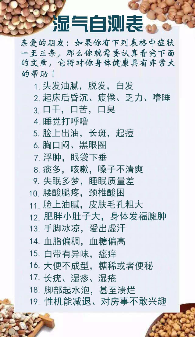 湿气上行,则会长斑长痘、头脸出油,湿气下注,则会引发一系列身体问题,损伤身体。湿气在皮,会引发各种皮肤问题,湿气入骨,则引发身体关节酸痛等。